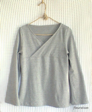 グレーの起毛ニットで私用のカシュクール風カットソーを作りました。 思っていたよりも短時間で出来て大満足です。 ニット素材を使用しているので、ただ今マタニティの私でも心地よく着ることができます。 今度は柄物で作ってみたいと思っています。