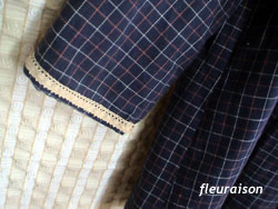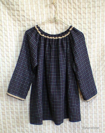 二重織のヘリンボーンにオーガニックレースをあしらった スモックブラウスを作りました。 とても優しい肌触りの布地で着ていてとてもリラックスします。 もう少し寒くなってきたらオフホワイトのタートルネックと合わせて着たいと思います。