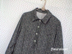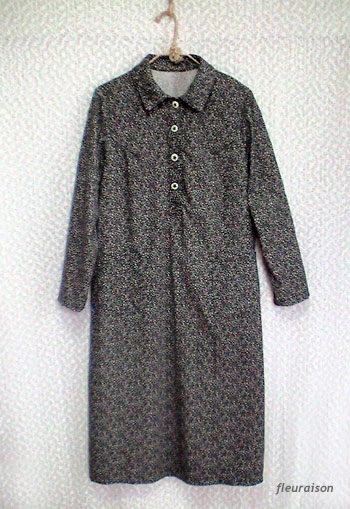 ネイビーの小花柄でゆったりマタニティサイズのワンピースを作りました。 五つ穴のボタンをアクセントに使ってみました。 使用素材はシャツコールなので暖かに着れそうです。 冬場はインにタートルを合わせたいなと思います。