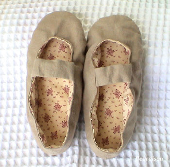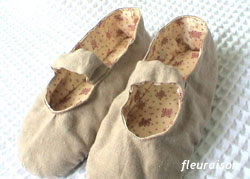 麻デニムとブーケ柄をを使って私のルームシューズを作りました。