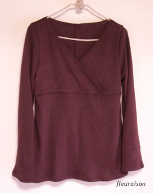 暖かなチョコレートカラーのニットで私のカシュクールを作りました。 袖口がラッパ袖で着物を思わせるような女性らしいシルエット。 手先の仕草を上品にしてくれます。 布地を変えて色々作ってみたいなと思います。