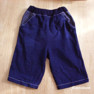 麻デニムで娘のフラップパンツを作りました。