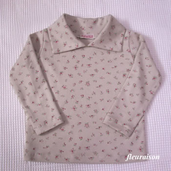 <ウィングカラーのTシャツ〜ベージュ小花ピンク〜>