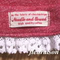 Rick Rackさんのブーツカットパンツをショート丈にアレンジして 娘の幼稚園用パンツを作りました。 ポケット口はリバティー風ニットでパイピング、裾にはレースをあしらって 女の子らしいパンツに仕上げてみました。
