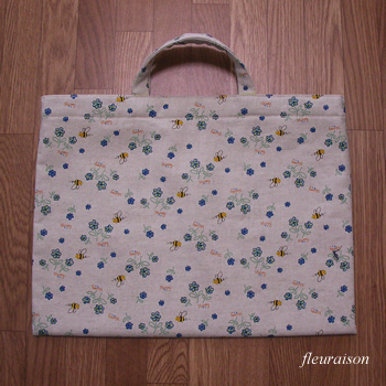 息子の通園手提げを作りました。 「ミツバチがいい~」と息子が選んで作ったものの、 色はブルー系、しかし、花柄・・・。 「これがいい!!」と気に入ってくれてるから、まっつ、いいか。
